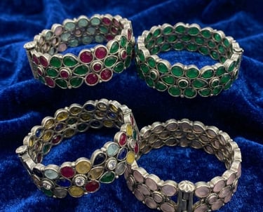 The Craft: Our artisans use a refined silver-brass alloy base to set high-grade glass or cubic zirconia into hand-pressed foil.